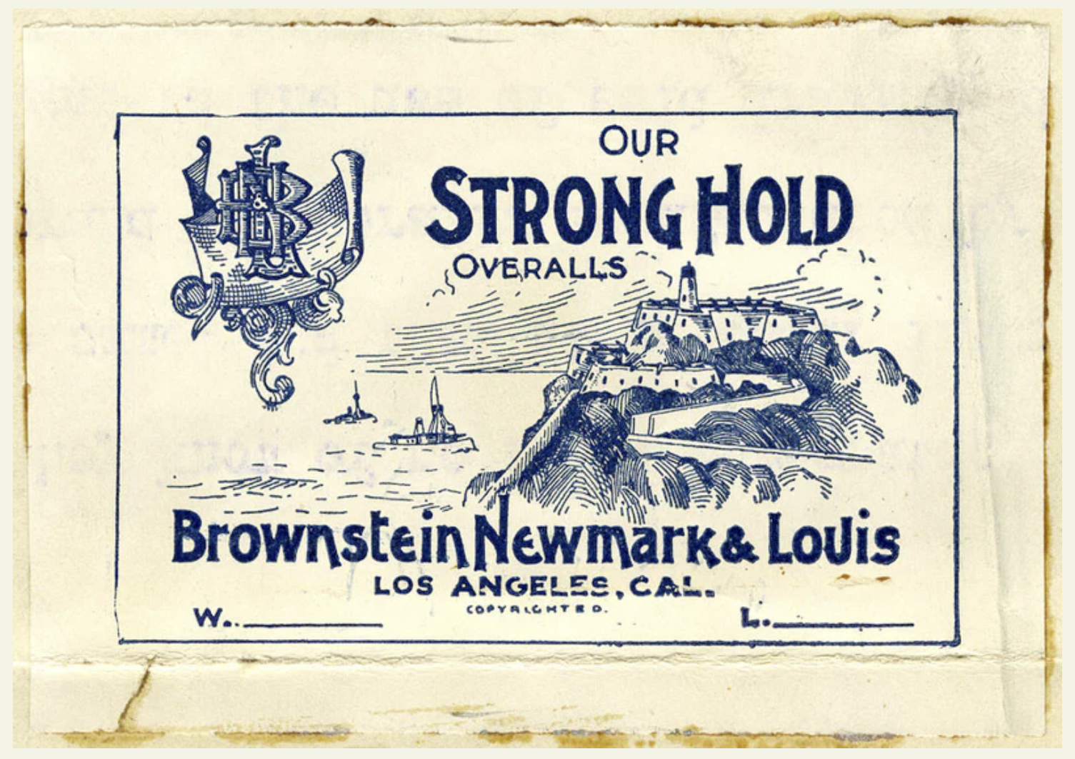 The Stronghold was the first branded apparel to be manufactured in Los Angeles and was the only maker of denim and canvas work wear in Los Angeles before WWII.